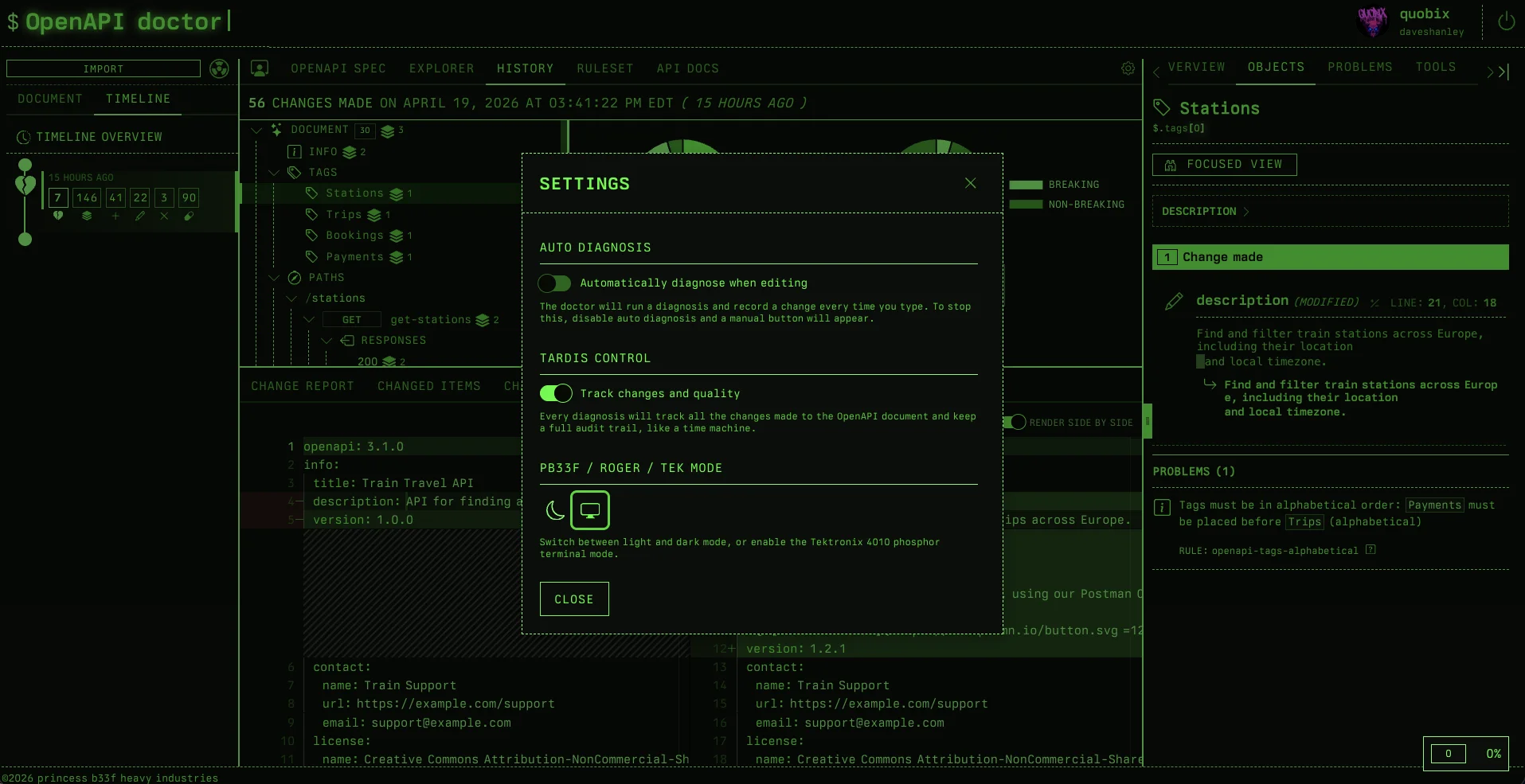 The library that powers all this capability is open source, and the components that power the doctor library are also open source. As the open source improves, so does the product, and every pb33f tool is compatible with the doctor (because it’s composed of them).